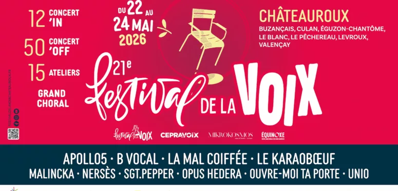 Du 22 au 24 mai 2026, Châteauroux et plusieurs villes de l’Indre accueillent la 21ᵉ édition du Festival de la Voix, un rendez‑vous incontournable pour les amoureux de musique vocale.