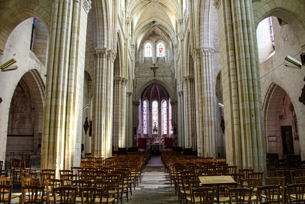 Je remonte la charmante ruelle, saluant les habitants très sympathiques et intéressés par les photos que je prends. Au bout de la ruelle, la colossale collégiale Saint-Sylvain, datant du XIIe siècle, s’offre à moi. J’apprends que cet édifice classé monument historique porte le surnom tout à fait justifié de « petite cathédrale du Berry ». Surprise ! À l’intérieur, la lumière qui traverse les vitraux éclaire magnifiquement le monument. Son orgue en hauteur daté de 1502 fait partie des trois plus vieux orgues de France !